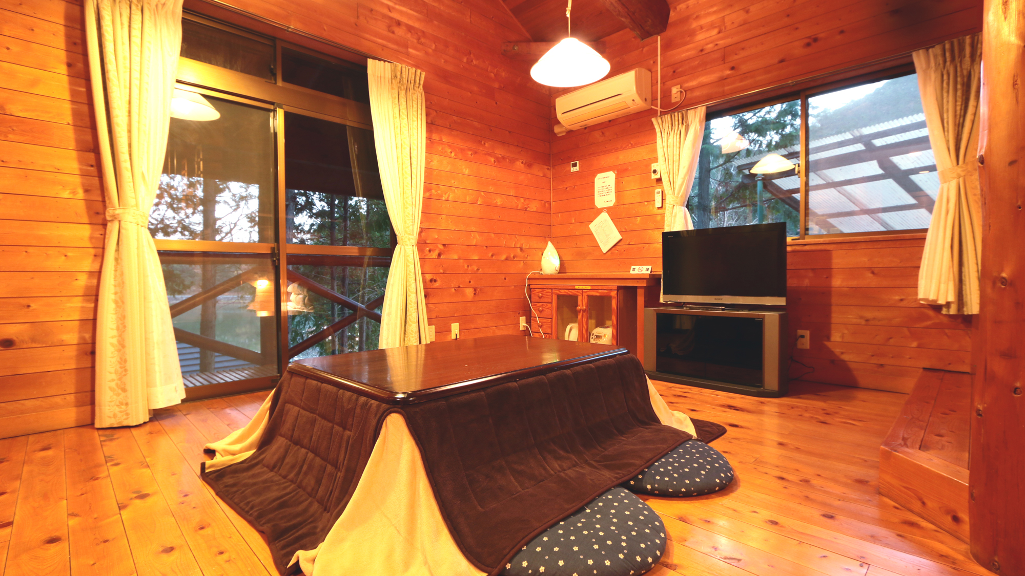 寒い冬でも囲炉裡小屋で暖かバーベキュー コテージ 軽井沢 草津のコテージ ふりーたいむ